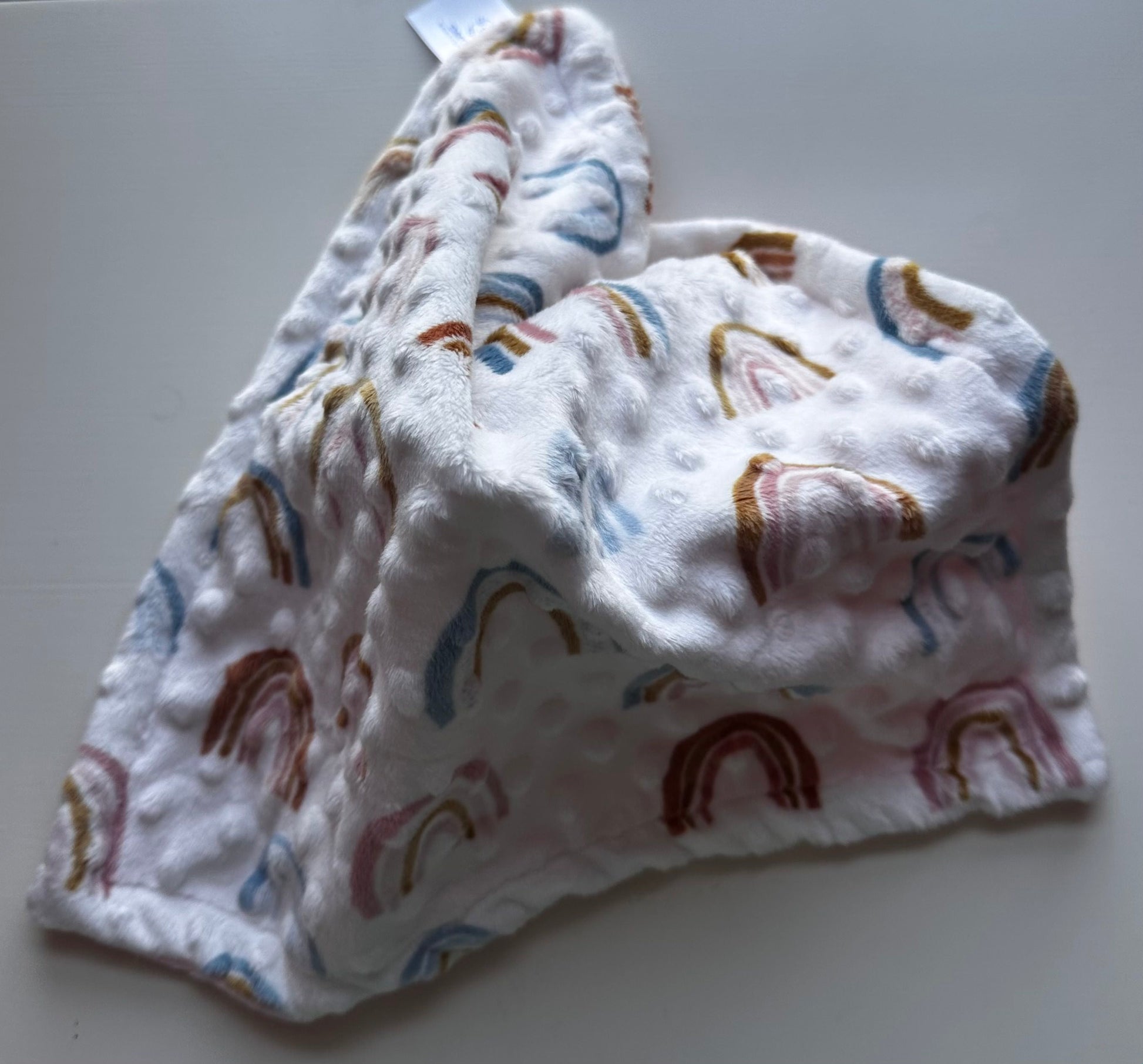 This Pink Rainbows Minky Lovey offers a soft, plush texture perfect for soothing babies and toddlers. The colorful rainbow design adds a cheerful touch while the lightweight size makes it easy for little hands to hold and cuddle. Crafted with premium minky fabric, it provides comforting warmth and sensory stimulation to support early development and promote restful sleep.